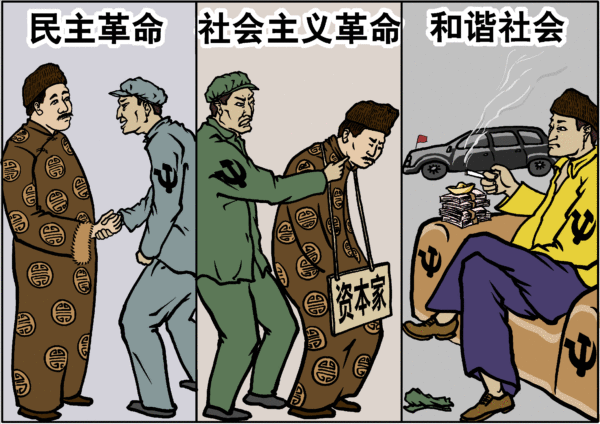 共产党是不讲人们公认的道义原则的。共产党的一切原则都绝对为其集团利益服务,以绝对自私为最高原则,没有任何道义原则抑制其集团欲望。从它的自我原则为根本,它需要不断披上不同的外皮。在这个持续危机锁链的早期,中共附着在苏共上,附着在国民党上,附着在国民政府实体上,附着在国民革命上;在它夺取政权以后,中共附着在各种机会主义上,附着在民意民情上,附着在社会机制和手段上,附着在一切之上,把每一次危机,都作为党发家的机会,加强其强制手段。